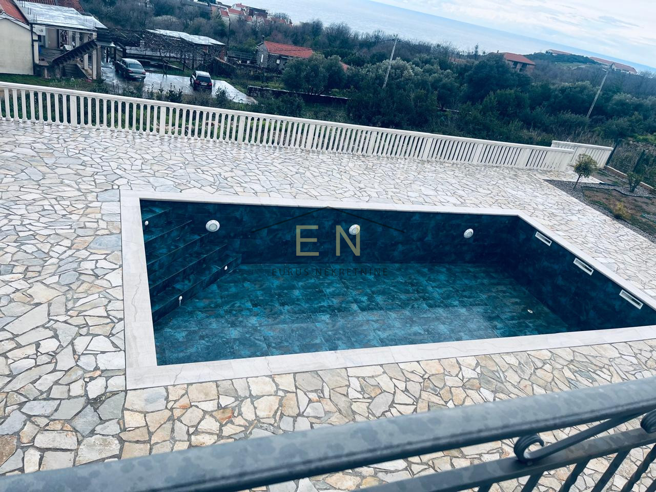 Across the street there is another villa with 3 independent residential units (a three-bedroom apartment with 4 bathrooms, a two-bedroom apartment with 3 bathrooms and a one-bedroom apartment with 1 bathroom? Areas? 300m2 + terraces and parking spaces... 3000 euros